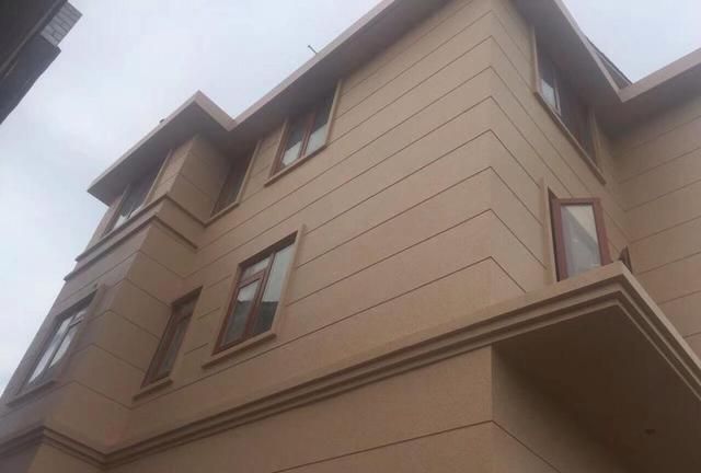 鄰居家新房外墻,刷了真石漆卻忘了罩面漆,不到一年看著像舊房子